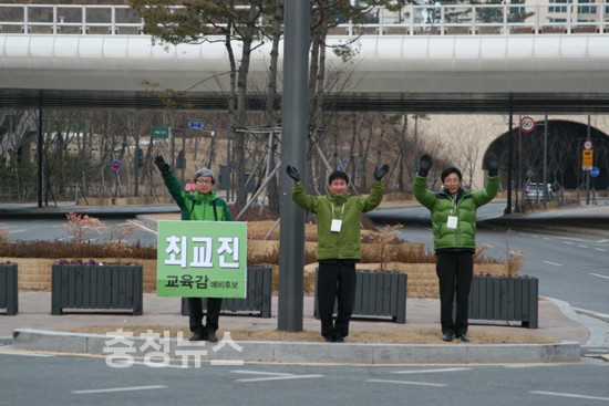 최교진 세종시 교육감 예비후보는 지난 4일부터 첫 마을 6단지 앞 사거리에서 첫 마을 주민들께 하루도 거르지 않고 출마 인사를 강행하고 있다.