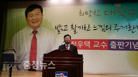 새누리당 대덕구청장 출마를 준비중인 정우택 대전대 교수가 19일 오후 6시 30분 대덕구 청소년 수련관에서 ‘주택재개발에 관한 법적분쟁의 해결방법 및 활성화 방안은 무엇인가’로 출판기념회를 열고 6.4 지방선거 대덕구청장 출마에 한발 더 다가갔다.