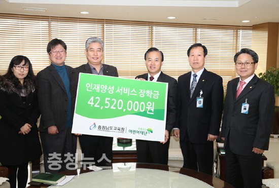 충남도교육청(교육감권한대행 부교육감 전찬환)은 26일 초록우산 어린이재단으로부터 체육․예술 분야 특기자와 학업우수자 등 우수 인재양성을 위한 장학금 4252만원을 전달받았다.