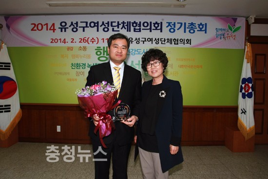 유성구의회 송대윤의원(사회도시위원장)이 26일 구청 중회의실에서 유성구여성단체협의회로부터 감사패를 받았다.