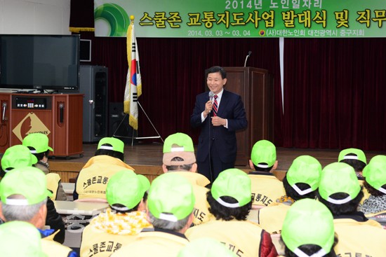 대전시 중구(구청장 박용갑)는 3일 대한노인회 중구지회 2층 회의실에서 박용갑 구청장을 비롯한 노인 일자리 참여 어르신 200여명이 참석한 가운데 ‘2014년 노인일자리사업 발대식’ 행사를 개최하며 노인을 위한 일자리 사업을 본격 시작했다.