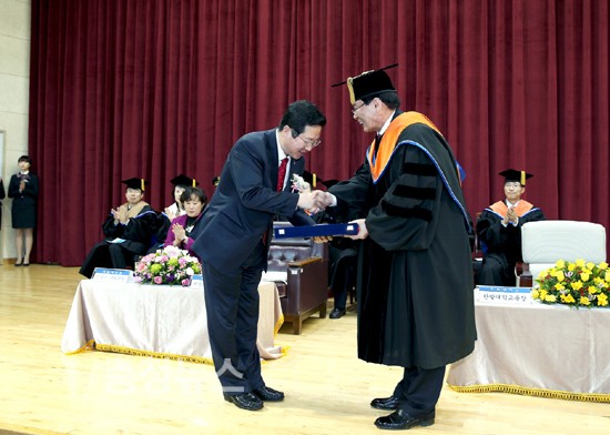 한밭대 이원묵 총장은 “이장우 국회의원이 한밭대의 국제교류센터 설립을 위해 국비를 확보하는 등 학교 발전에 크게 기여를 했다”며 감사패를 수여했다.