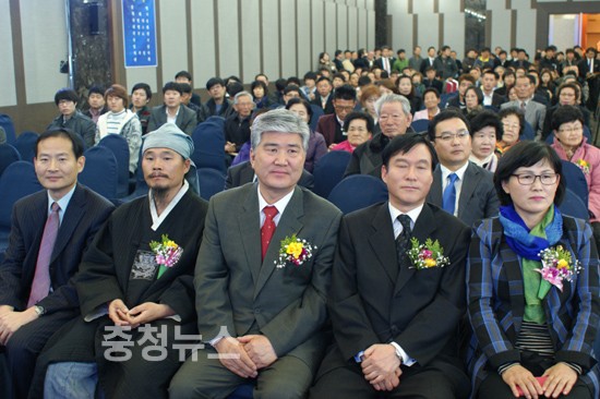 ▲김영진 교수, 김봉건 훈장, 한숭동 대전시교육감 예비후보, 이서령 중구 당협위원장, 김인식 대전시부의장