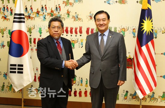 강창희 국회의장은 4일 오후 국회접견실에서 국회 초청으로 방한 중인 빤디까르 아민 물리아(Pandikar Amin Mulia) 말레이시아 하원의장 일행을 접견하고 양국의회 간 우호협력관계 증진 및 경제협력 강화방안 등 공동 관심사에 대해 의견을 나눴다.