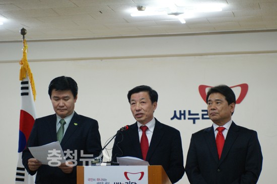 6.4 지방선거 새누리당 대전시장 출마예상자 이재선 전 국회의원, 육동일 교수, 정용기 대덕구청장이 4일 시당 3층 강당에서 노병찬 행정부시장의 시장출마와 관련 긴급 기자회견을 열고 ‘우리는 상왕식이 아닌 상향식 공천을 촉구한다’고 강력 주장했다.