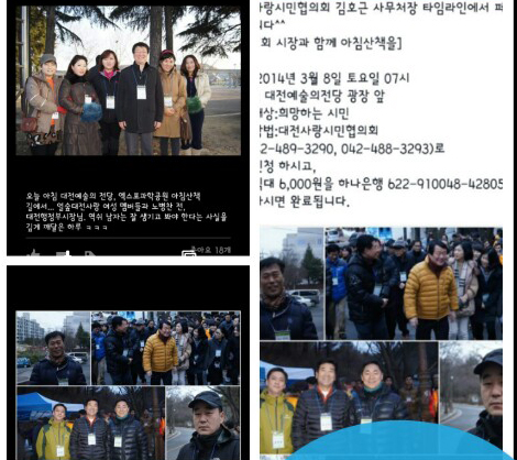 이날 행사에는 김세환 대전시티즌 대표와 선수(빨간색 유니폼) ,하나은행 직원, 얼숲 회원과 시민들이 참석한 가운데 지난 7일 새누리당에 입당한 노병찬 前 부시장, 송덕헌 비서실장 등이 참석했다.