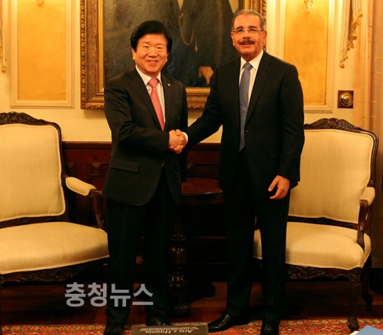민주당 박병석 부의장이 11일(현지시각) ‘다닐로 메디나 산체스(Danilo Medina Sa??nchez) 도미니카 공화국 대통령과 만나 양국간 경제협력 방안 등에 관해 논의했다.