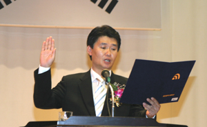 ▲ 정용기 구청장의 선서 ▲ 정용기 구청장 취임식