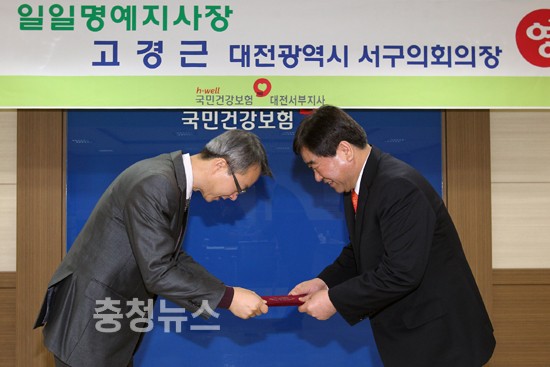 서구의회 고경근 의장은 19일 만년동 국민건강보험공단 대전서부지사(지사장 성백길)에서 일일명예지사장으로 위촉됐다.