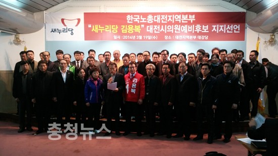 한국노총 대전지역본부는 오는 6.4 지방선거에 출마하는 새누리당 김용복 시의원 예비후보를 지지한다고 선언했다.