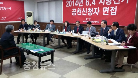 새누리당 대전광역시당 공천관리위원회(위원장 이양희)는 20일 제4차 회의를 열어 6·4지방선거 대전동구,중구청장후보자를 비롯한 광역, 기초의원 63명에 대한 면접 심사를 실시했다.