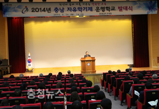 충남도교육청(교육감권한대행 부교육감 전찬환)은 24일 오후 도교육청 대강당에서 자유학기제 78개 운영학교 교원과 학부모 등 총 400여명이 참석한 가운데 ‘2014년 충남 자유학기제 발대식’을 개최했다.