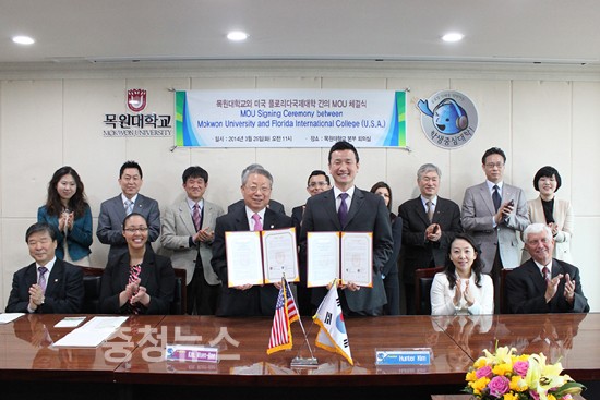 목원대학교(총장 김원배)는 25일 오전 본부 회의실에서 미국 플로리다주 올랜도에 위치한 플로리다국제대학교의 Hunter Kim 총장과 Jessica Kim 기획법률처장, Joseph Blake 이사 등 양 대학 관계자들이 참석한 가운데 국제교류에 관한 협약을 체결했다.