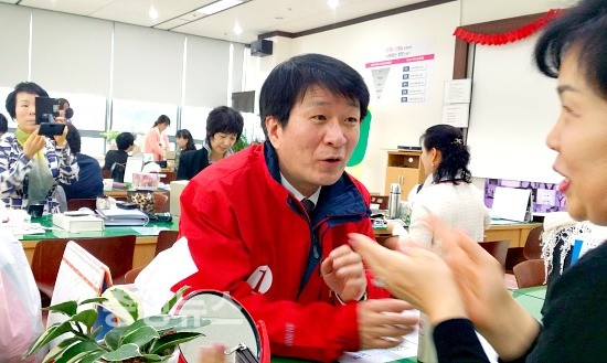 노병찬 새누리당 대전시장 예비후보는 25일 대덕구 오정동 아모레퍼시픽 우리 특약점을 방문, 화장품 방문 판매 주부사원들을 만나 고충을 듣는 시간을 가졌다.