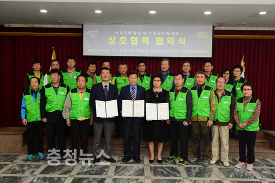 대전시 중구(구청장 박용갑)는 9일 (사)대전시중구자원봉사센터(센터장 이옥화), 공무원연금공단 대전지부(권홍집)와 함께 퇴직공무원의 사회공헌 활동 및 자원봉사 활성화를 위한 업무협약을 체결했다.