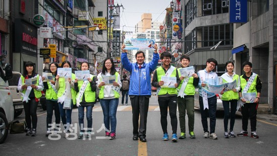 이창기 대전시교육감 예비후보는 지난 12일 청소년 자원봉사동아리 '유성가꿈이' 학생들과 함께 유성구 궁동 로데오거리에서 '쏘 캠페인'을 펼쳤다.