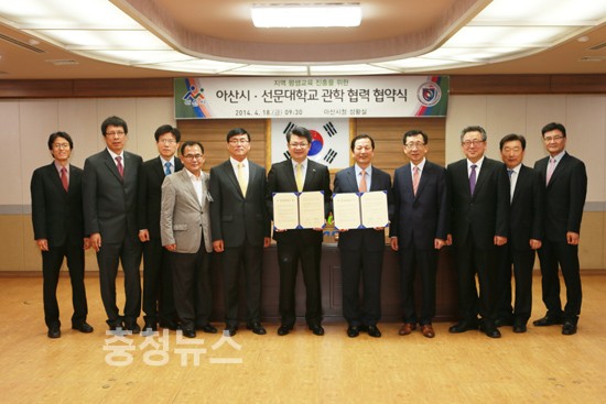 아산시가 상대적으로 평생 교육시설이 빈약한 동부 지역주민들의 평생교육권 확보를 위해 18일 시청 상황실에서 관내의 선문대학교(총장 황선조)와 ‘지역 평생교육 진흥을 위한 관․학 협력 협약식’을 개최했다.