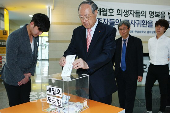 ‘세월호’ 침몰 희생자 가족들에게 각계의 구호 손길이 이어지고 있는 가운데 한남대학교도 아픔을 함께 나누고 있다.