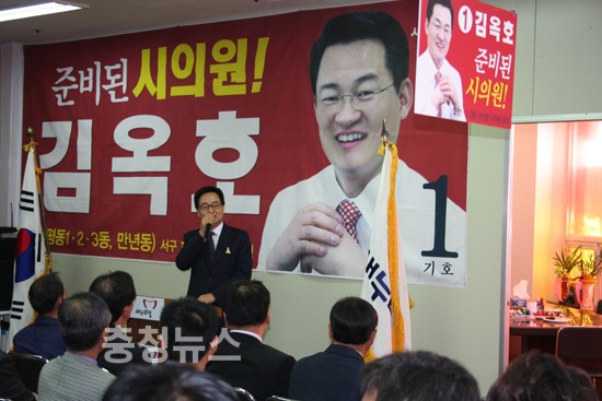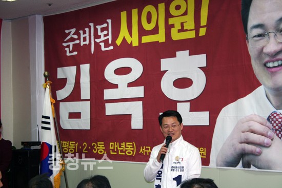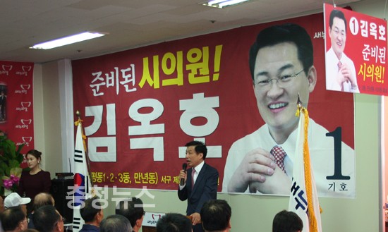 김옥호 후보는 지난 4년간의 의정활동과 대전시당 대변인 등의 경험으로 더 큰 봉사를 하기 위해 시의원출마를 하게됐다고 밝혔다.