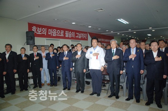 ▲ 정진석 도지사후보 선대위발대식에 참석한 시장군수후보