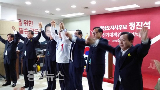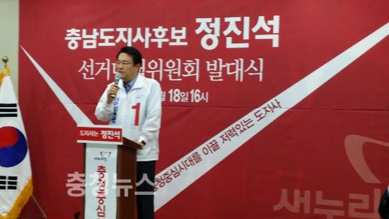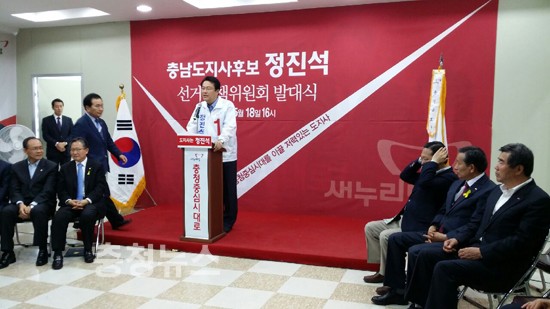 새누리당 정진석 충남도지사 후보가 18일 매머드 선거대책위원회를 발표하면서 4년 안희정 실정을 혁파하고, 도정 탈환을 위한 본격적인 선거진용을 갖췄다.