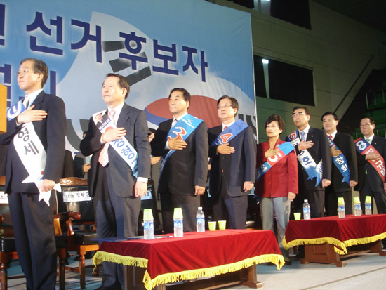 이어서 정형근 후보(기호 2번)는 "지난번 두 번의 대선에서 충청권의 마음을 얻지 못해 한나라당이 실패했지만 이번 지방선거에서는 저력을 보여줬다"며 고마운 마음을 전했다.