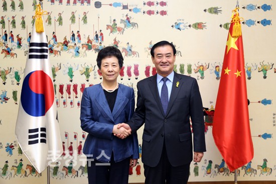 강 의장은 이날 접견에서 “한.중은 지난 1992년 수교 이후 교역이 36배 증가하고, 특히 인적교류가 800만이 넘어서는 등 획기적인 협력관계 발전을 이룩했다”며 양국 관계의 발전을 높게 평가했다.
