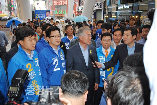 새정치민주연합 문재인 상임고문이 25일 오후 권선택 대전시장 후보를 지원하기위해 대선 패배 이후 처음으로 대전 은행동 으능정이 거리에 모습을 드러냈다.