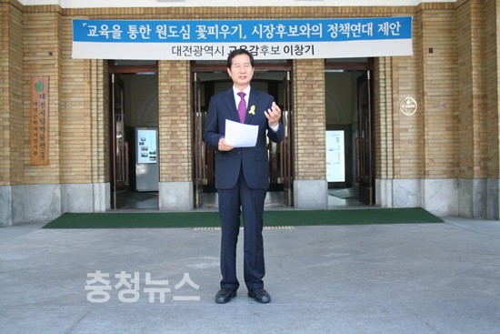 이창기 대전광역시교육감 후보가 대전의 교육과 원도심 활성화 방안 대책을 묶는 융합행정 정책을 제안해 눈길을 끌고 있다.