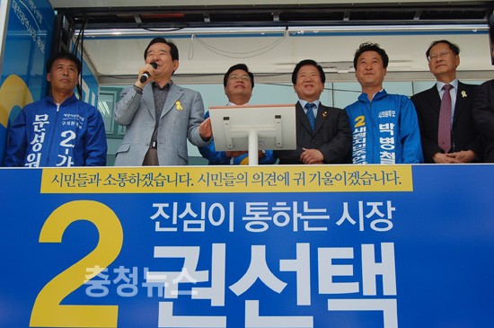그런 점에서 권 후보은 잘 익은 그런 일꾼이다. 그래서 어려움도 알고 잘나가보기도 하고 정말 대전에 계시는 중산층이나 서민들 장애인들 노인 어른신들 잘 모실 수 있는 분이라고 생각한다며 대전의 미래를 잘 준비해갈 수 있는 후보가 바로 권선택 후보”라고 치켜세웠다.