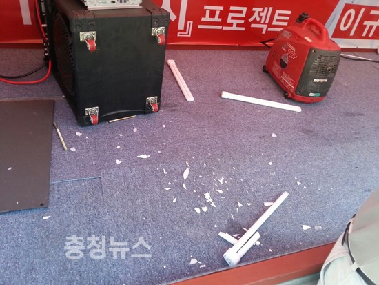 이 후보 측은 "주목해야 할 점은 발전기, 엠프 등 고가의 제품은 가져가지 않고 선거운동에 필요한 형광등과 전선 등을 파손한 점으로 보아 철저한 선거운동 방해 목적인 것으로 보인다"고 밝혔다.