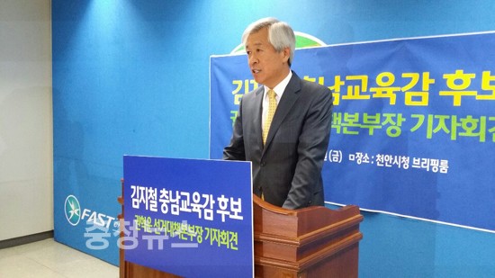 권혁운 김지철 충남교육감 후보 선대본부장은 30일 “충남교육감 선거가 상호비방과 불법선거로 얼룩지고 있다”며 “부끄럽지 않은 깨끗한 정책선거로 임하자”고 주장하고 나섰다. 권혁운 선대본부장은 이날 기자회견을 열고 “실종된 교육자의 원칙과 소신, 교육감으로서의 품격을 말씀드리기 위해 이 자리에 섰다”고 밝혔다.