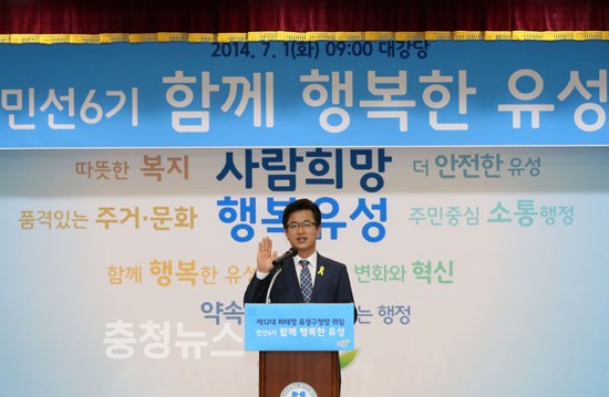 민선 5기에 이어 민선 6기 대전 유성구청장으로 취임한 허태정 유성구청장이 1일 취임식 대신 사업보고회를 열고 새로운 시작을 알렸다.