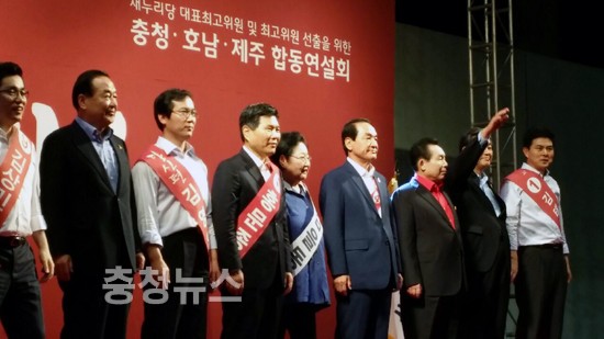 새누리당은 6일 오후 대전 무역전시관에서 충청·호남·제주 지역 유권자를 대상으로 '7·14 전당대회' 첫 후보 합동연설회에서 각후보들은 박근혜 대통령 마케팅을 강조하며 黨心을 호소했다.