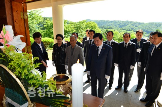 7일 김기영 의장을 비롯한 유익환․이진환 부의장, 각 상임위원장 7명 등이 함께 충남도의회(의장 김기영)는 제10대 전반기 의장단과 상임위원장 등 예산 충령사 참배를 시작으로 본격적인 의정활동을 시작했다. ▲ 충남도의회 김기영 의장, 예산 충령사 참배 도의회는 7일 김기영 의장을 비롯한 유익환․이진환 부의장, 각 상임위원장 7명 등이 함께 예산군 대술면 소재 충령사를 방문해 헌화와 분향 후 순국선열 및 호국영령에 대한 묵념을 했다. 참배를 마친 김기영 의장은 “210만 도민에게 꿈과 희망을 주는 선진의정을 만들어 가겠습니다”라고 각오를 다짐했다. 저작권자 © 충청뉴스 무단전재 및 재배포 금지 김거수 기자 다른기사 보기 기사가 마음에 드셨나요? 충청뉴스 좋은 기사 후원하기 1,000원 3,000원 5,000원 10,000원 30,000원 50,000원 직접입력 비회원 약관동의하기 ※ 소중한 후원금은 더 좋은 기사를 만드는데 쓰겠습니다.