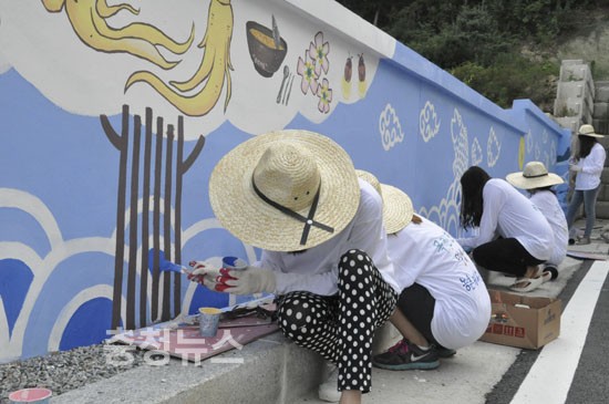 목원대(총장 김원배) 한국화전공(주임교수 정황래)의 대학생 창업동아리 먹빛-향이 농촌 재능나눔 리더 양성을 위한 한국농어촌공사의 “2014 농촌재능 나눔 공모사업“에 선정되어 지난 14일부터 20일까지 충남 금산 제원면에 위치한 동곡리 마을 일대에서 미대생들의 땀방울이 농촌마을의 분위기를 새롭게 변화시키는 마을벽화로 탄생되고 있다.