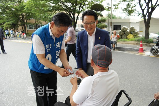 박 전 원내대표는 이날 대덕종합복지관(읍내동 용화사 입구)과 한마음노인복지관(법2동 한마음아파트)을 방문해 "새정치민주연합이 기초노령연금을 차별 없이 혜택 드릴 수 있도록 노력하겠다"며 "박영순에게 대덕구와 대전을 위해 바칠 수 있는 기회를 달라"고 지지를 호소했다.