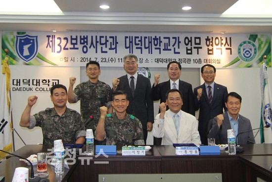 대덕대학교(총장 홍성표)는 지난 23일 정곡관 10층 대회의실에서 제32보병사단(사단장 이정기)과 업무협약식을 갖고 군사학부(총 9개 학과)의 교육체계 발전과 부사관 육성에 필요한 현장실습(병영체험)을 지원하기로 했다.