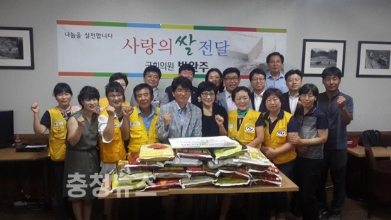 박 의원은 2013년부터 5월 ‘천안행 열차에서 희망을 만나다’ 출판기념회를 시작으로, 7~8월‘찜통교실 개선대책’ 등 토론회를 축하하는 쌀화환을 자선단체에 사용하도록 전달했다.