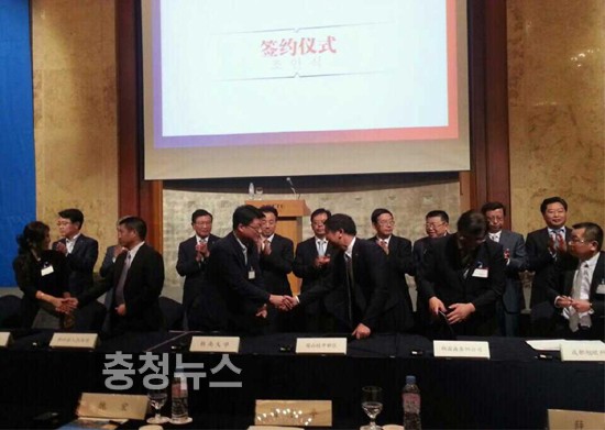 ▲ 한남대 바이오마케팅 사업단과 쓰촨성 메이산 바이오특구와의 MOU체결 모습