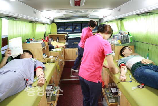 충남대학교병원(병원장 김봉옥)에서는 5일 오전 9시 부터 12시까지 행정동 앞 주차장에 마련된 현혈차량에서 병원 임직원들이 참여한 가운데 ‘사랑의 헌혈’ 행사를 개최했다. 이번 헌혈 행사는 충남대학교병원 임직원들이 환자들의 아픔을 나누고, 하절기 지역 혈액수급에 보탬이 되고자 대한적십자사 대전·세종·충남혈액원의 '사랑의 헌혈운동'에 동참한 것으로 충남대학교병원에서는 매년 2차례 이상 전 직원이 참여하는 헌혈행사를 개최하고 있다.
