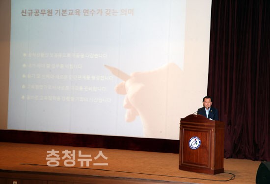 충남도교육청(교육감 김지철)은 25일부터 9월 5일까지 2주에 걸쳐 금년도 임용시험에 최종 합격한 신규 지방공무원 116명을 대상으로 충남교육연수원에서 올바른 공직 가치관과 사명감을 심어주기 위해 ‘신규공무원 기본교육과정 연수’를 실시한다.
