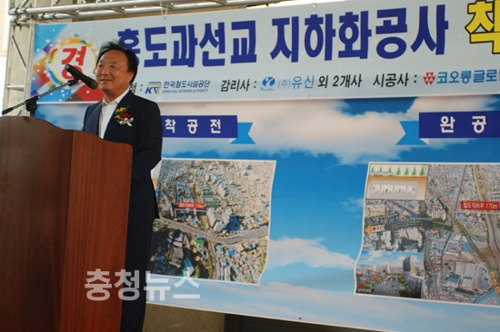 한편 이날 착공식에는 권선택 대전시장과 이장우 국회의원, 한현택 동구청장,노병국 한국철도시설공단 충청본부장,정재민 코오롱글로벌주식회사 상무와 동구주민 등 350여명이 참석했다.