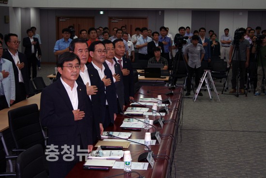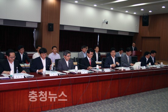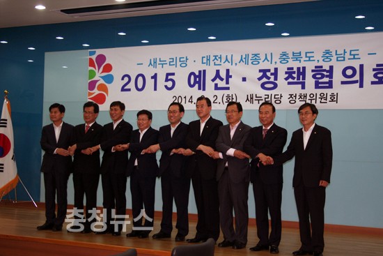 새누리당 주호영 정책위의장과 홍문표 예산결산위원장과 예결위원들이 참석한 가운데 충청지역 권선택 대전시장, 이춘희 세종시장, 이시종 충북지사,안희정 충남지사와 시도 기획관리실장이 배석해 예산 현안을 논의했다.