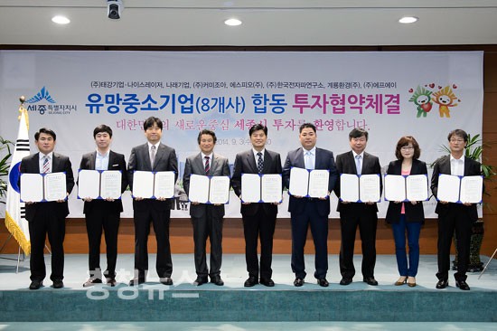 세종시는 3일 시청 대강당에서 이춘희 시장과 시의원, 기업관계자가 참석한 가운데 (주)태강기업 등 유망 중소기업 8개사와 투자협약을 체결했다.