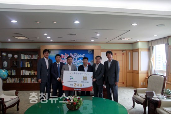 ㈜충남도시가스가 4일 대전시티즌과 후원협약을 맺고 후원금 2억원을 전달했다.