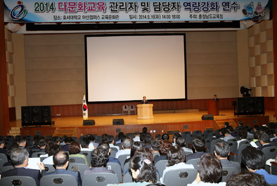 충남도교육청(교육감 김지철)은 16일 호서대학교 아산캠퍼스 교육문화관에서 도내 유·초·중·고등학교 교장 및 직속기관 업무담당자 759명을 대상으로 ‘다문화교육 관리자 및 담당자 역량강화 연수’를 실시했다.