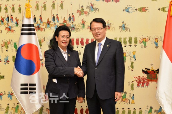 정 의장은 이어 “근래 한국과 인도네시아는 급속도로 인적․경제적 교류가 늘어나고 있다”면서 “인도네시아에서는 조코위 대통령이 당선되고, 10월에는 의회가 새로이 구성될 예정인데, 향후 한국과의 관계가 더욱 진전되기를 바란다”고 밝혔다.