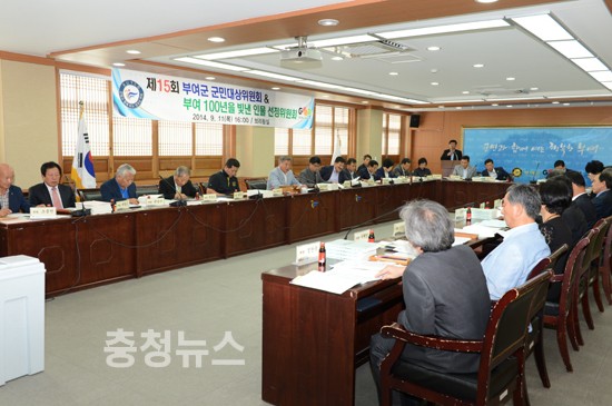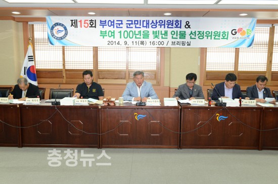▲ 부여100년을 빛낸 인물 선정 심의를 주관하고 있는 이용우 군수