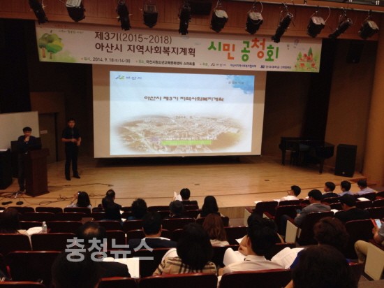 아산시가 제3기(2015~2018) 지역사회복지계획수립 시민공청회를 지난 18일 아산시청소년교육문화센터에서 강익재 부시장을 비롯해 아산시의회 의원과 시민, 사회복지 전문가 및 관계자 등 150여 명이 참석한 가운데 개최했다.